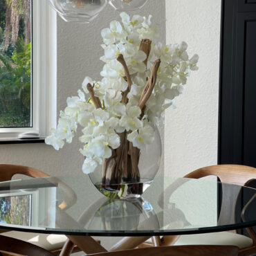 Lleve la belleza de las orquídeas vanda a su interior con este magnífico arreglo artificial que durará todo el año. Este arreglo artificial de orquídeas Vanda se presenta en nuestro distintivo jarrón luna para un toque de elegancia añadida. Los tallos de Vanda y las ramas de madera de deriva de California están anclados en nuestra agua de imitación líquida, lo que aumenta el hiperrealismo de