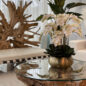 blanco phalaenopsis orquídeas en dorado metal Bowie cuenco