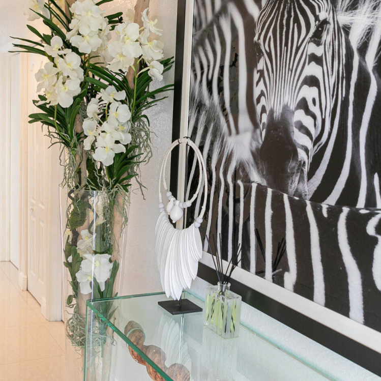 Las flores blancas han convertido a la orquídea Vanda en una de las favoritas de los entusiastas de las flores exóticas. Sin embargo, cultivar estas hermosas orquídeas puede ser complicado; requieren mucha luz y humedad, y tienden a prosperar mejor cuando se dejan en el mismo lugar. Nuestro duradero arreglo de orquídeas Vanda artificiales luce impresionante en cualquier sitio, independientemente de la luz o el clima.