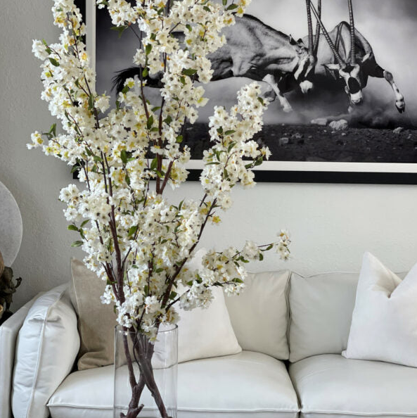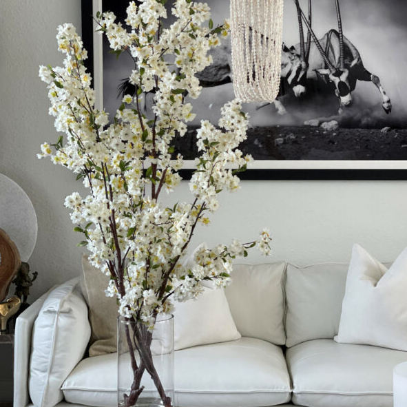 Las flores de cerezo son una flor simbólica de la primavera, que representa un momento de renovación y la naturaleza efímera de la vida. Ancladas en agua de imitación dentro de un cilindro de cristal de 40 cm, estas impresionantes y realistas flores de cerezo transformarán cualquier habitación de su hogar. Refresque y revitalice su espacio con estas bellezas.