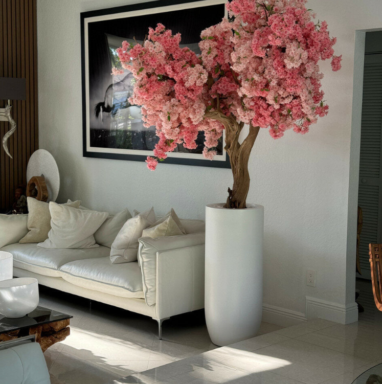 Las flores de cerezo son símbolos de la primavera, representando la renovación y la naturaleza efímera de la vida. Anclada en nuestro jarrón St. Tropez blanco mate, esta pieza elegante añade un toque moderno a cualquier decoración. El diseño minimalista del jarrón complementa sin esfuerzo cualquier ambiente, ya sea en el hogar o en la oficina. Su tamaño y forma son perfectamente adecuados para acomodar nuestro gran cerezo rosa. Cada árbol es único, con flores cuidadosamente colocadas a mano por nuestros artesanos en troncos de madera procedentes de las montañas de California. Este ramo de exuberantes y elegantes flores de cerezo aporta frescura y sofisticación a cualquier habitación.