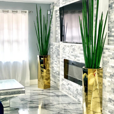 La máxima declaración de lujo, nuestra Colección Pure Gold presenta un macetero octogonal en forma de prisma de acero inoxidable de alto brillo en color dorado, combinado con una planta artificial de Hierba de Serpiente. Cada pieza está cuidadosamente elaborada y pulida para lograr un lujoso acabado de espejo. ¡No necesita regar sus plantas! Duraderas, le durarán años y se mantendrán hermosas durante todo el año. Diseñado
